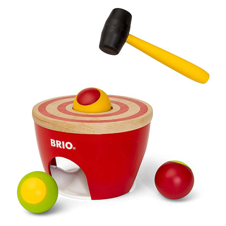 ボールをたたいて穴に入れて三つの音を聞き比べ、どこの穴から出で来るかな?何回も繰り返して遊びましょう!