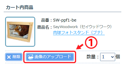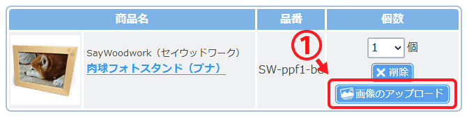 (1) 「画像のアップロード」ボタンをクリック。