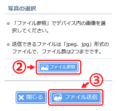 (3) 「ファイル送信」ボタンで選択いただいた写真を送信します。